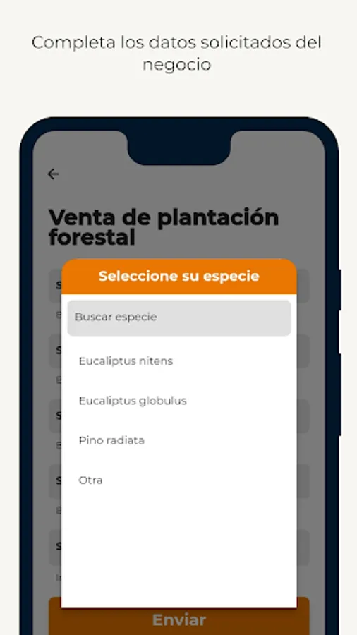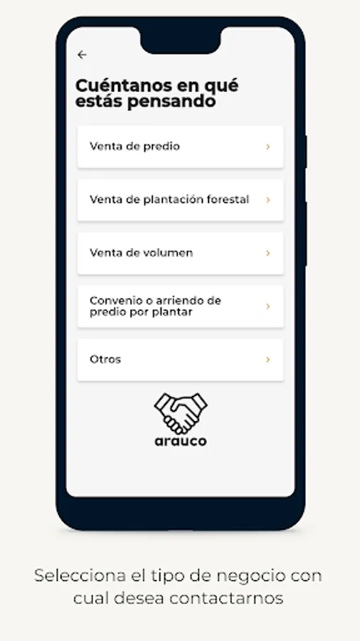 ARAUCO application to establish contact with those interested in the sale or lease of land, forests or wood