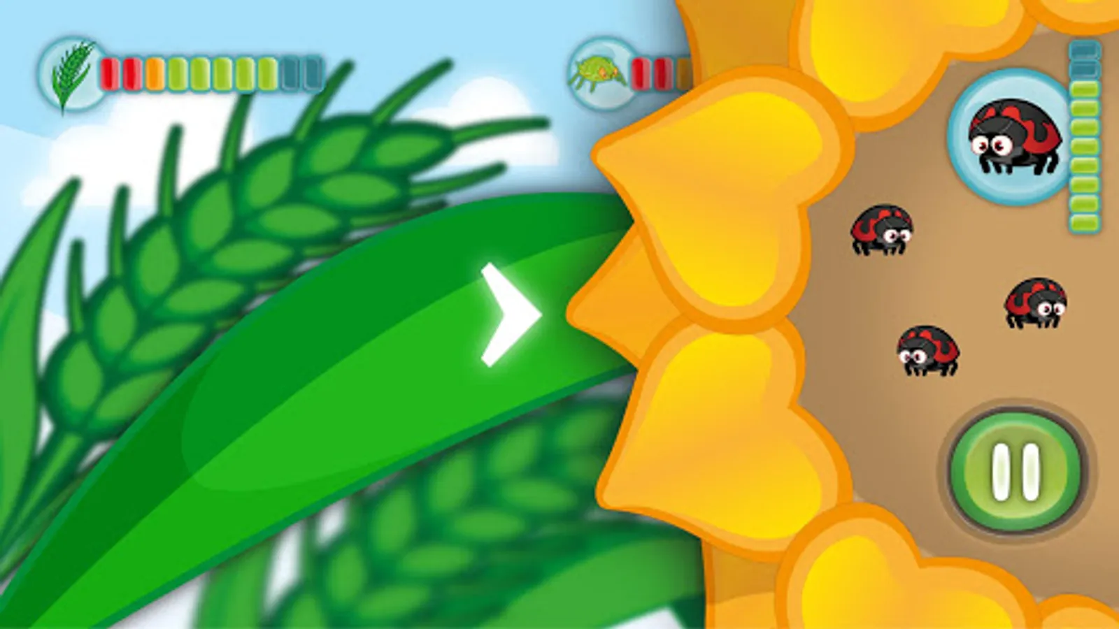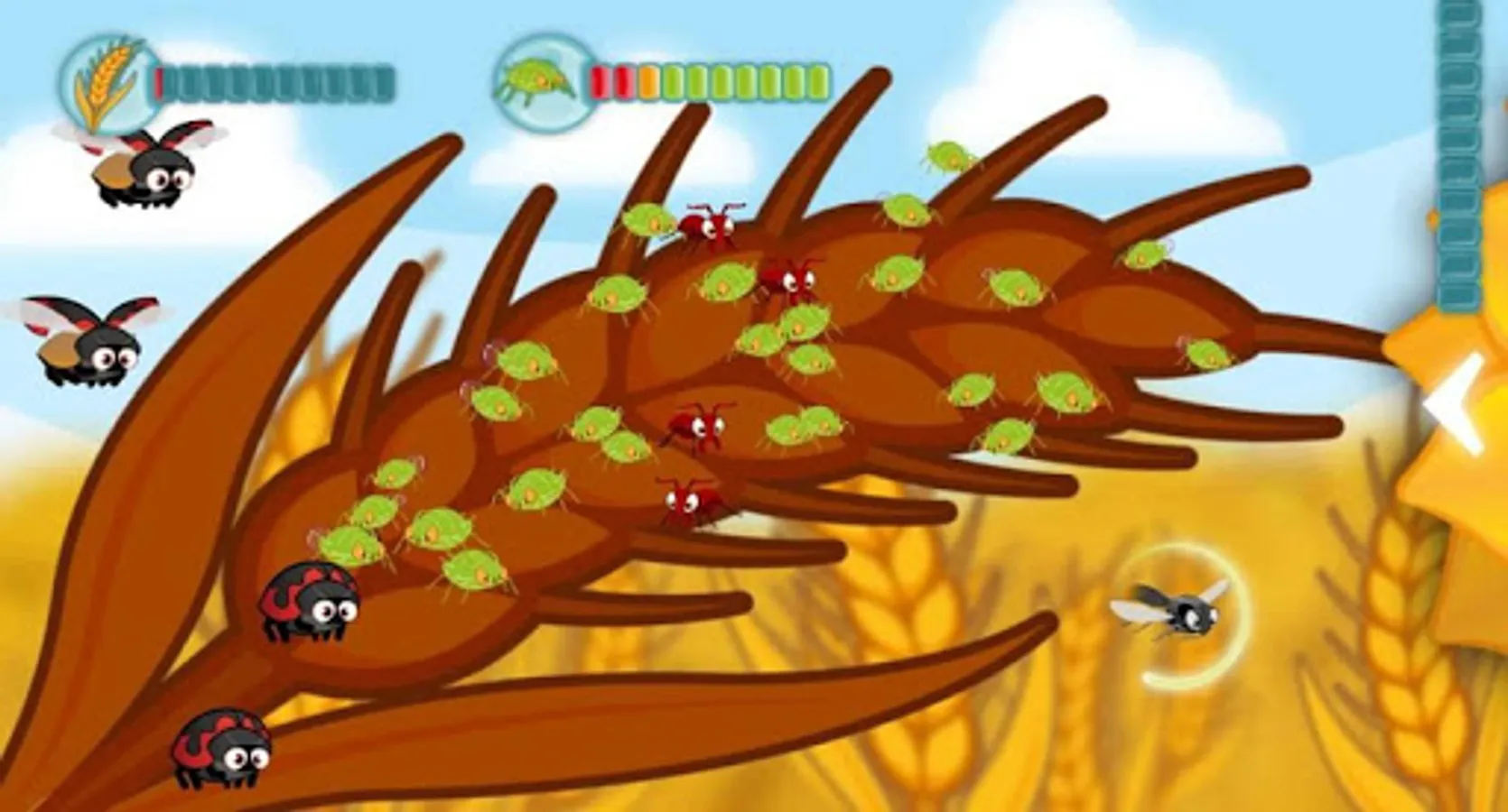 A peaceful city of wheat is besieged by a group of misfits, including the aphids "Padi" and "Gramino", along with their inseparable henchman called "Humile" (represented by an evil ant). During the hottest months, between December and February in the southern hemisphere, “Padi” and “Gramino” go in search of food, their main target being the sap of the beloved wheat. For this reason, the farmers of the city organized to defend themselves and enlist the help of the superheroes "Eri" (represented by a funny but daring little Chinese girl) and "Ervi" (a parasitoid that twists its abdomen). The mission of these heroes and biological controllers is to save wheat crops, unleashing a great adventure that includes six levels for a player who must defend through the actions of Ervi and Eri, the dark adventures of Padi, Gramino and Humile.