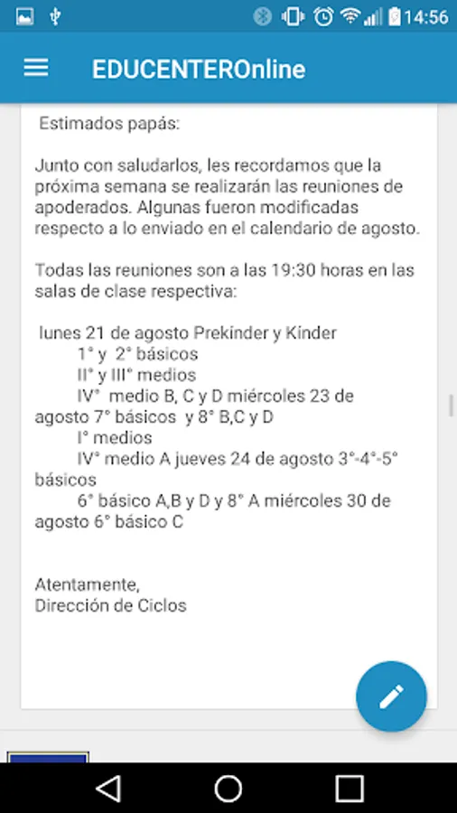 EDUCENTEROnline, it is an application for managing communications between educators, students and parents of an educational establishment which power positively parental educational support and everyday living. By unilateral messaging, News allows teachers, enriched by communicating messages, everything that happens in the institution, as well as generate talking points for their parents and students.