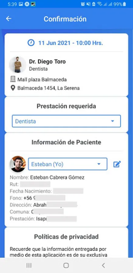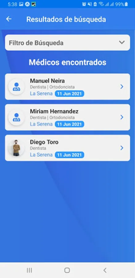 You can search for doctors and schedule a time within the established schedule. You can schedule a time for yourself or for a close relative (charges).