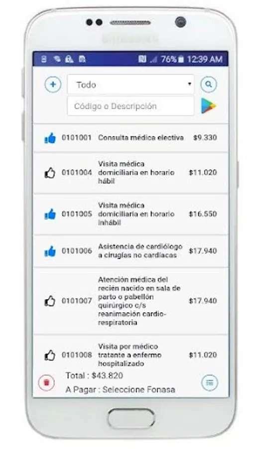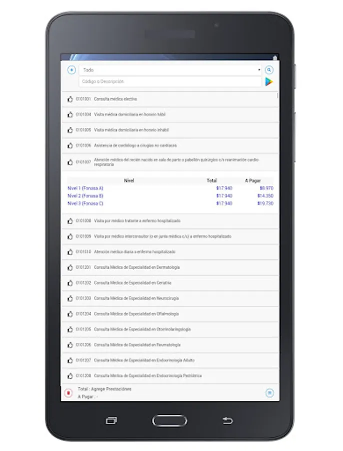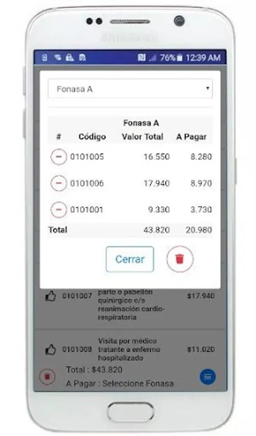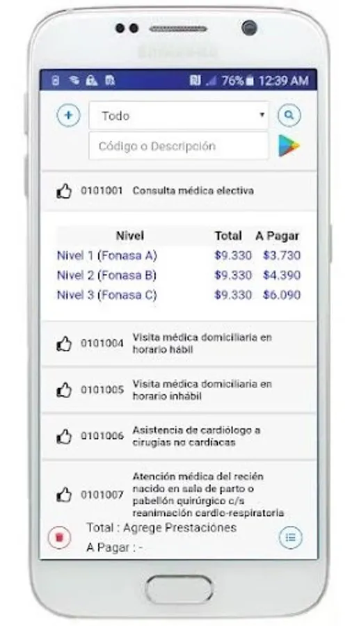 Mobile application with information on the benefit values of Fonasa (National Health Fund).