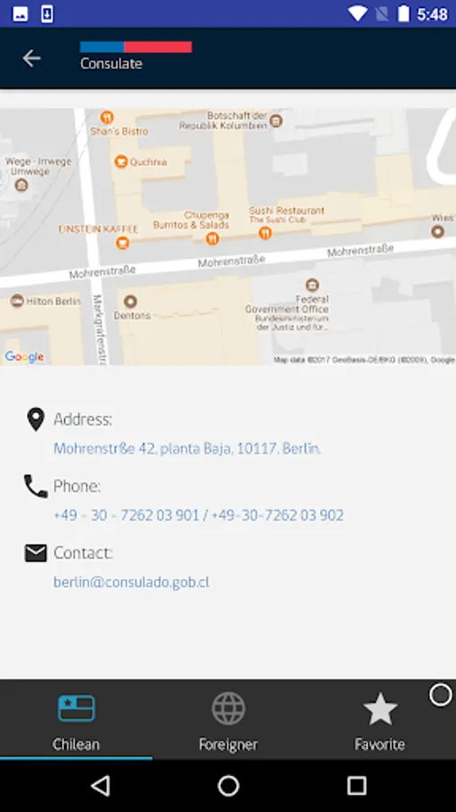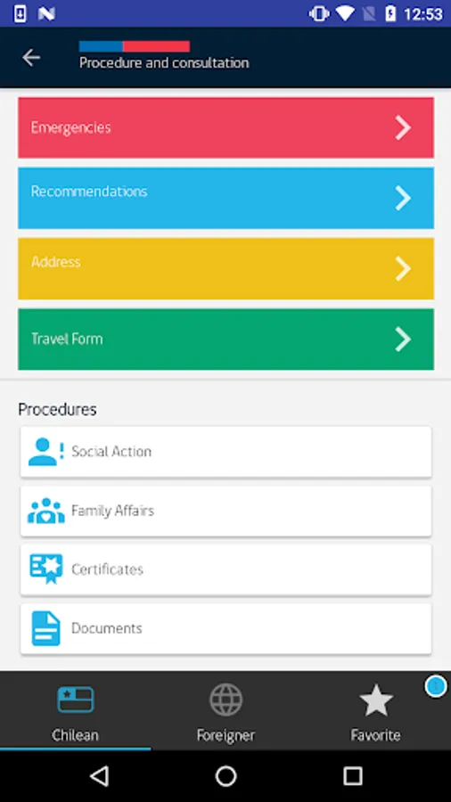 CLAbroad allows you to find the Chilean consulates abroad and learn what administrative proceedings are available on each of them. Also, Chileans can see recommendations for travelling to each country, and register as travelers. Foreigners who visit Chile may search with this app the consulates of their corresponding country in Chilean territory.