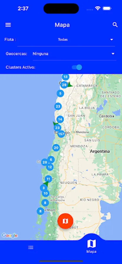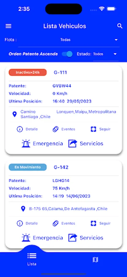 Application to see in real time, all your vehicles connected with GPS entel