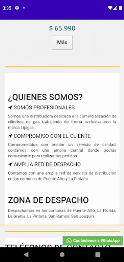 We are a distributor dedicated to the commercialization of gas cylinders, working exclusively with the Lipigas brand.