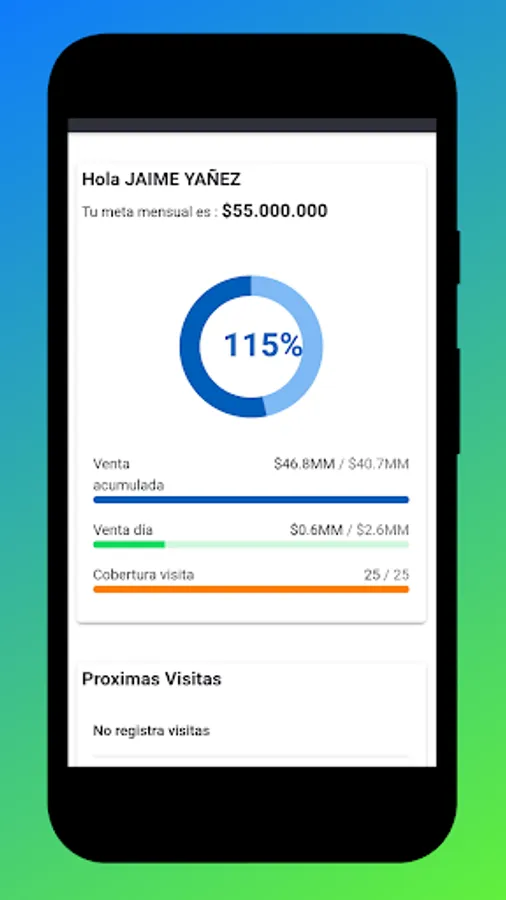 It allows you to visualize the daily and monthly objectives of the seller, generate customer check-in, quotes, schedule visits.