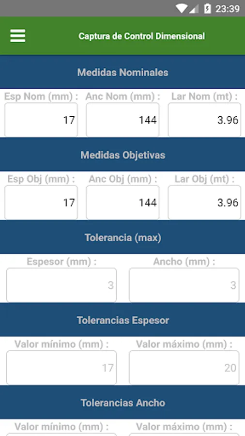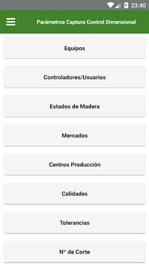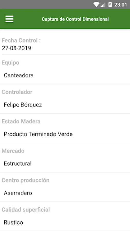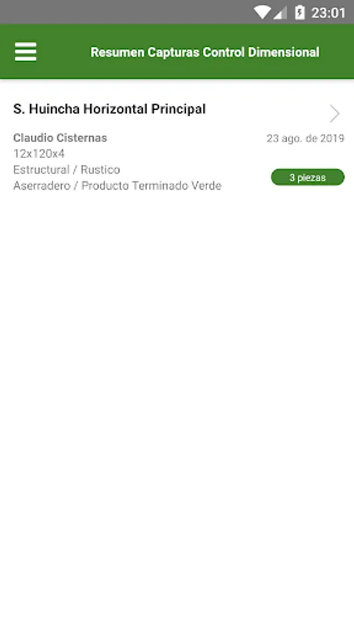 App Captura Dimensional Control of the Forestry Institute for companies in the area of sawn timber; SMEs sawmills, barracks. The application allows the capture of measurements of wood in the field by using a digital meter foot connected by bluetooth, the captured measurements are expressed in millimeters (mm). and after the capture they are sent to a WEB application to generate different reports and graphs to generate statistics on the information captured in the field.