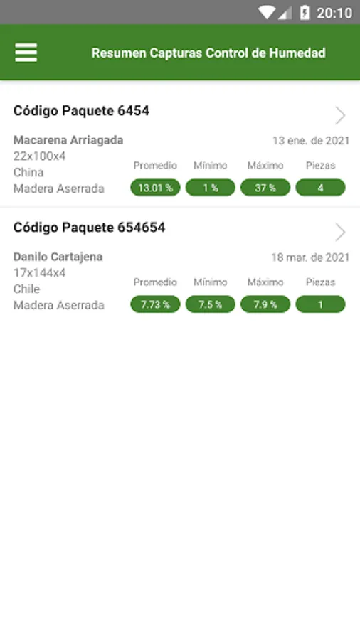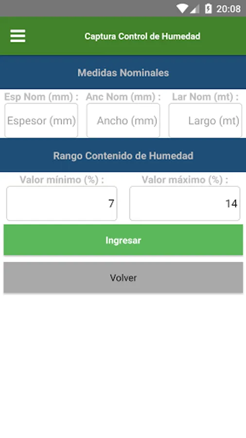 App Capture Control of Moisture of the Forest Institute for companies of the lumber category; SMEs sawmills, barracks. The application allows the capture of humidity control in the field and after the capture the data is sent to a web platform to perform statistical analysis for humidity control in SME sawmills. Controlling the moisture content allows the company to identify deviations in terms of product quality. It is possible to carry out the control on dry wood, both sawn and planed wood.
