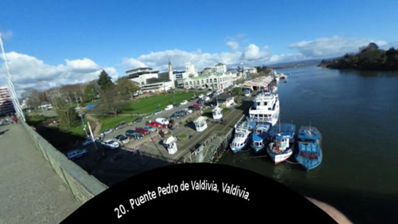The Valdivia360 application displays 24 panoramic images of southern Chile. Consider images of Valdivia (Costanera, Puente, etc.), Panguipulli (interior and exterior of the Church), Castro Square (in front of the Plaza) in Chiloé, Costanera de Chonchi in Chiloé, Beach and church of Cucao in Chiloé, Puerto Varas, etc.