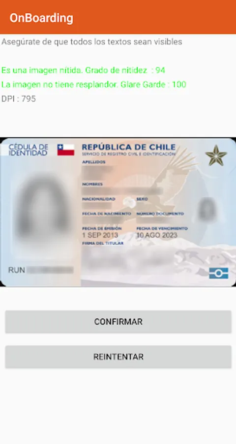 Example application that shows the flow of validation of an identity card and its subsequent facial validation by capturing a selfie.