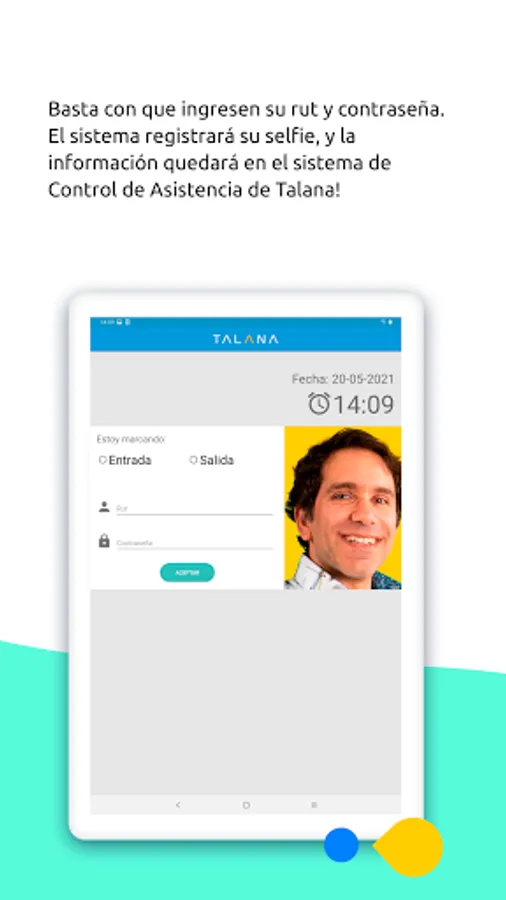 All they have to do is enter their rout and password. The system will record your selfie, and the information will remain in the Talana Attendance Control system!