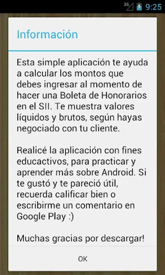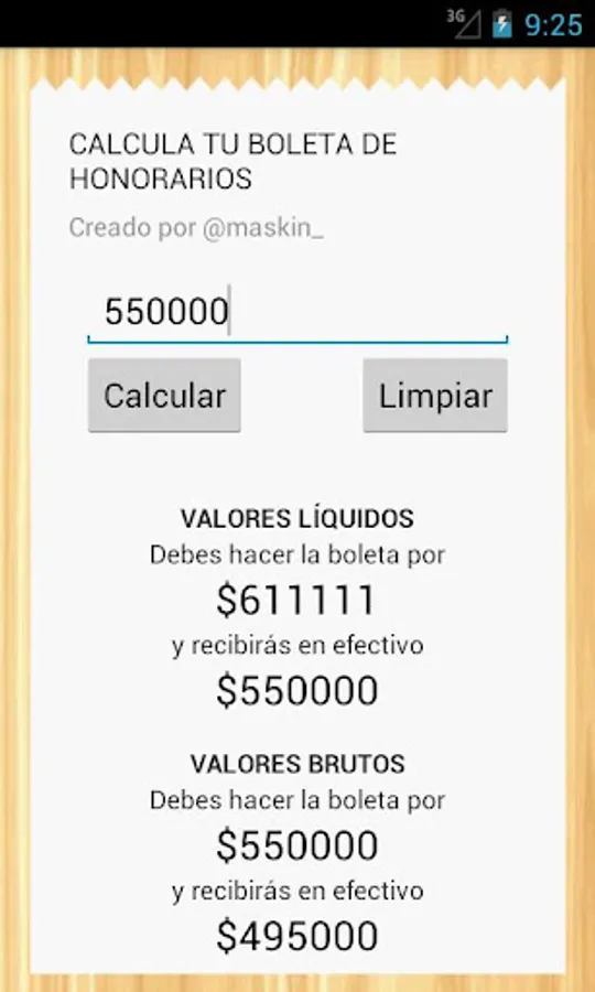This simple application helps you to calculate the amount that you enter when making a Ballot Fee in the Internal Revenue Service (SII) of Chile. It shows gross liquid securities and, as you have negotiated with your client.