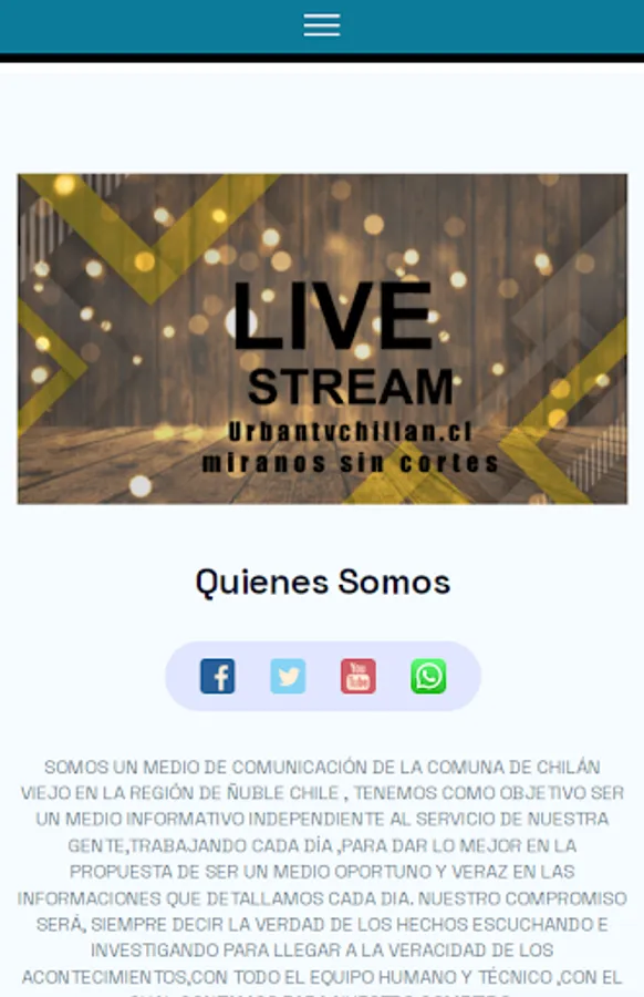 WE ARE A MEDIA OF THE CHILÁN VIEJO REGION IN THE REGION OF ÑUBLE CHILE, OUR OBJECTIVE IS TO BE AN INDEPENDENT INFORMATIVE MEDIA AT THE SERVICE OF OUR PEOPLE, WORKING EVERY DAY, TO GIVE THE BEST IN THE PROPOSAL OF BEING A TIMELY AND TRUTHFUL MEDIA IN THE INFORMATION THAT WE DETAIL EVERY DAY. OUR COMMITMENT WILL BE, ALWAYS TELL THE TRUTH OF THE FACTS BY LISTENING AND RESEARCHING TO REACH THE TRUTH OF THE EVENTS, WITH ALL THE HUMAN AND TECHNICAL TEAM, WITH WHICH WE HAVE FOR OUR MISSION.