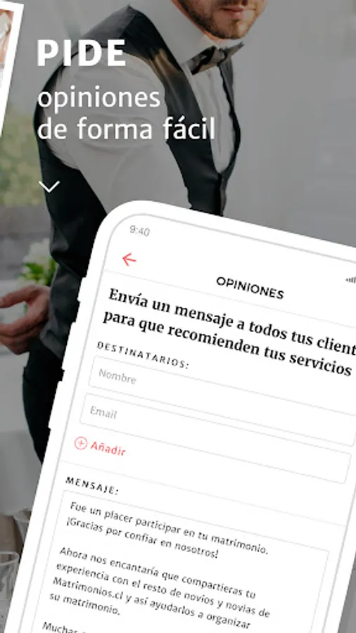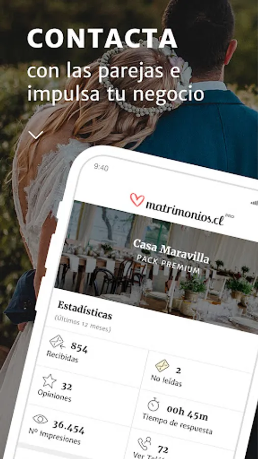 The free app that helps you get the most out of your business marriages. Essential for the thousands of companies on the portal Matrimonios.cl, the largest bridal worldwide directory.