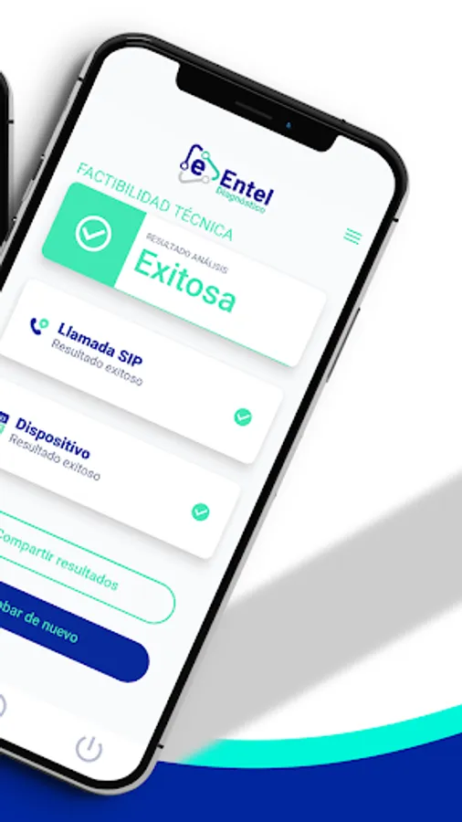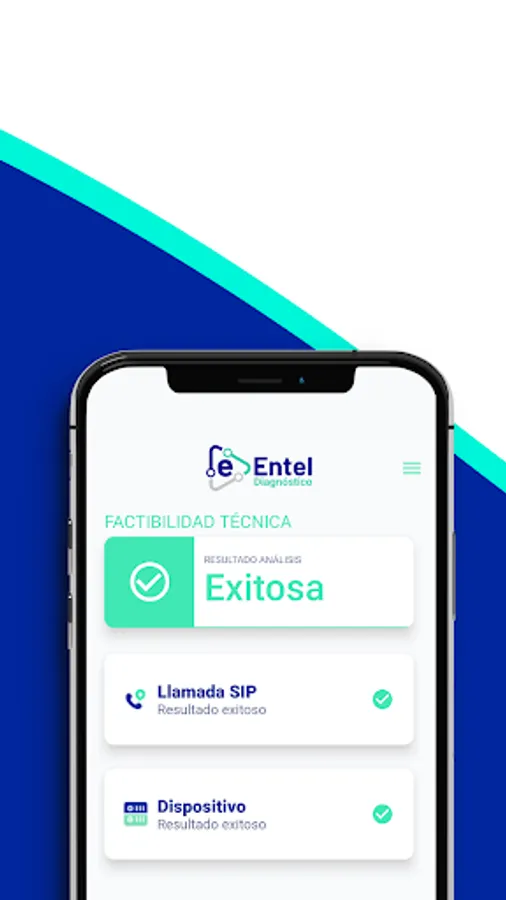 The app allows you to diagnose the network and check the feasibility for the use of Entel products such as Entel One (VoIP calls), access to provision and management services.