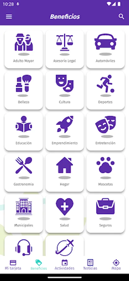 The application allows you to view the benefits available on a map or through categories. In addition, you can view your digital card. With the application you will get coupons for the different benefits.