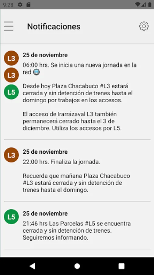 • Instantly know the complete status of the network, of each of the lines and stations of the Santiago Metro.