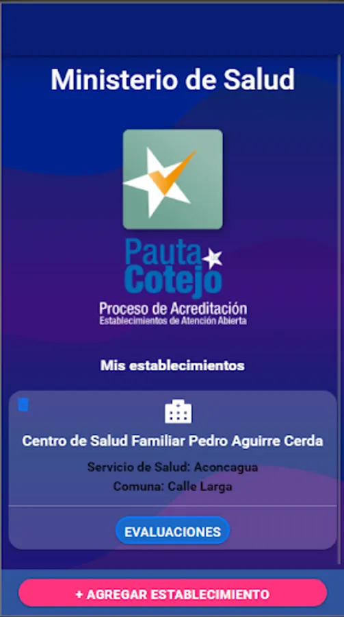 Application that allows knowing the normative contents, instructions and criteria used by the Accrediting Entities (EA) to evaluate the Establishments. By using this App you can apply the same assessment used by the EAs and allows you to prepare to accredit the Establishment.