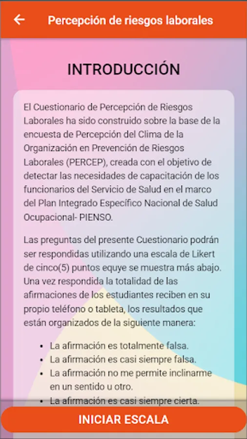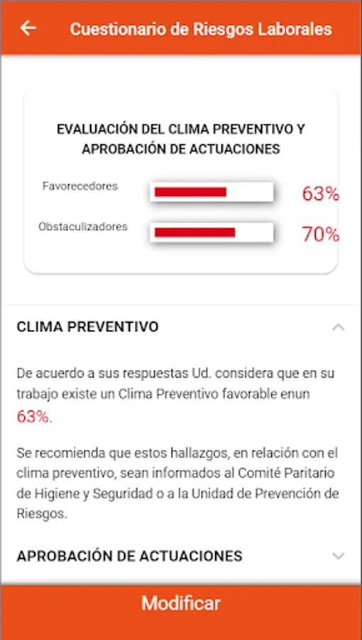 The objective of this application is to prevent health risks and work stress by self-checking, in order to grant the best possible well-being to workers and minimize the risks that can occur in occupational diseases and accidents at work.
