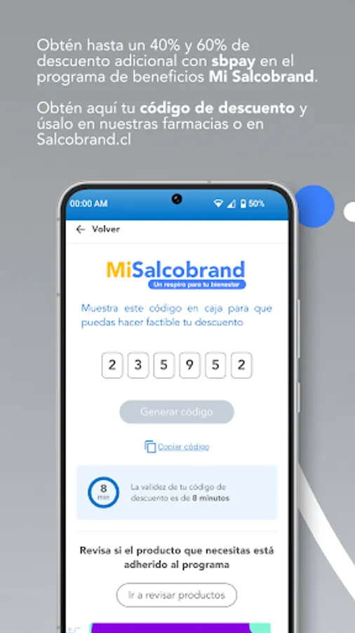• Obtain your discount code in My Salcobrand for purchases in Salcobrand pharmacies and in Salcobrand.cl.