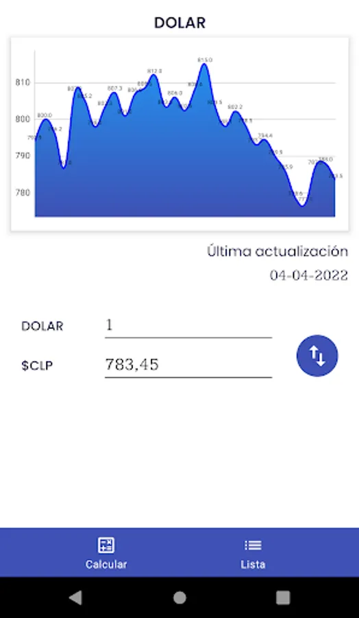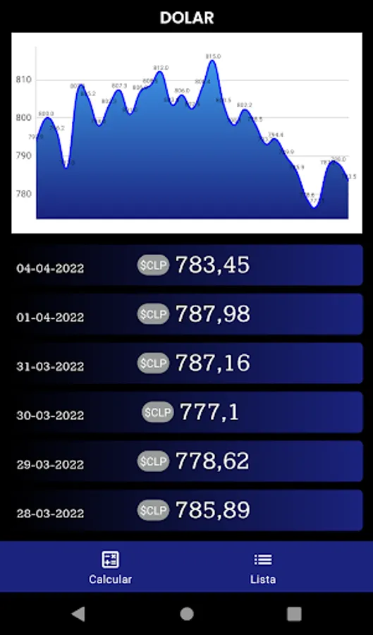 It includes a calculator to convert the values of the Dollar, Euro, UF and UTM to Chilean pesos.