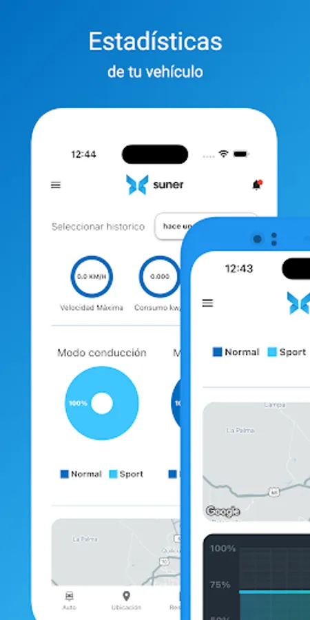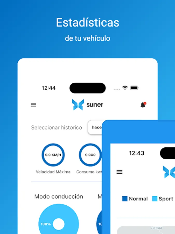 And that's not all! With SunerApp you have Telemetry of your EV Voltera, GPS, display range of the last 5 min, hour, 6 hrs and 24 hrs of telemetry parameters, consumption display, last km traveled, driving mode, geolocation of the car in the last trip selected, battery status and much more