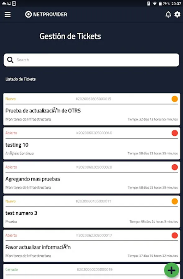 Within this platform, it is possible to manage different types of service tickets, which are related to the services that our company provides to its clients.