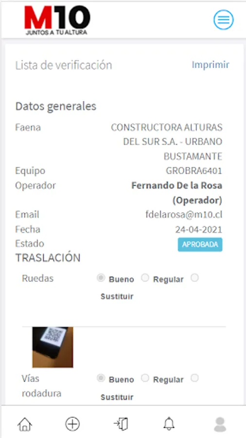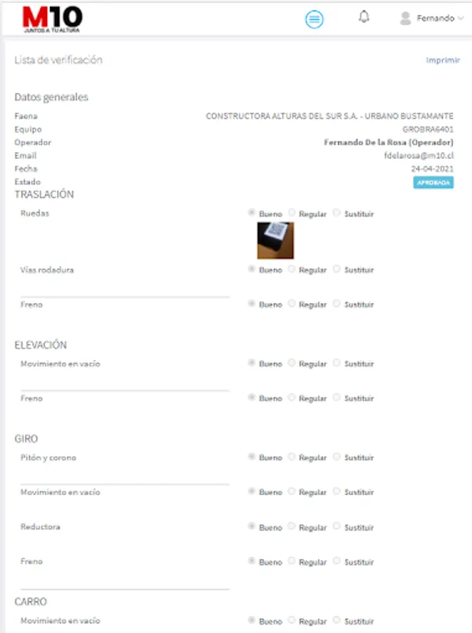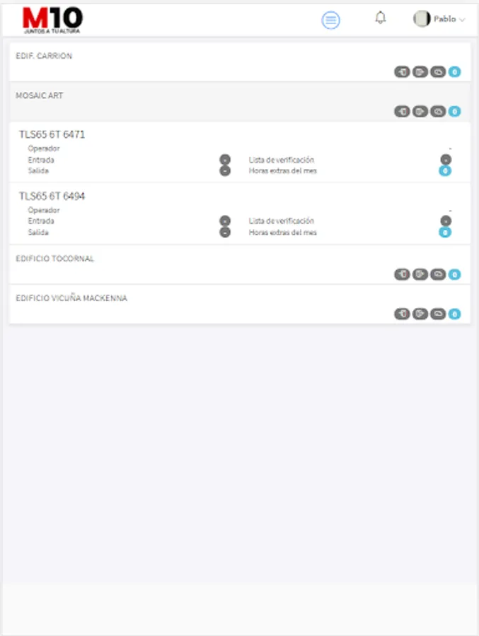 Application for the control of crane in works in M10. Entry and exit registration, operator control, maintenance, documentation, etc.