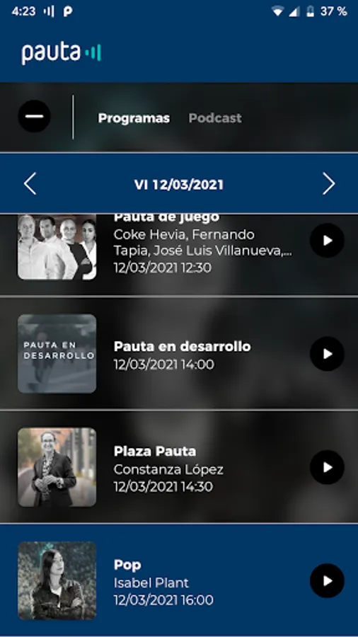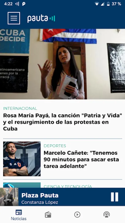PAUTA is an application that combines the most relevant news from Chile and the world, the best music and three streaming channels (one with radio audio and two independent signals with video content).
