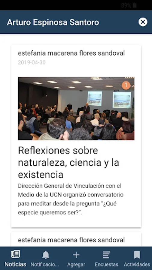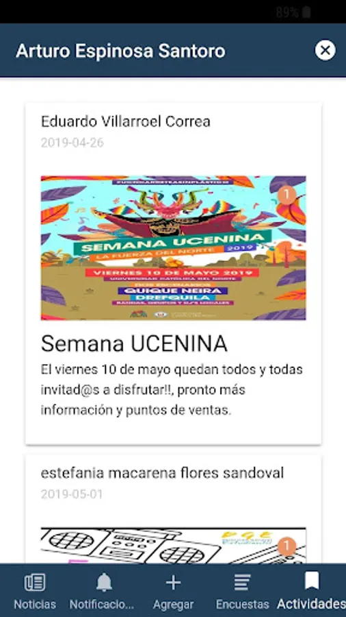 Application responsible for delivering relevant information to students of the School of Education of the Universidad Católica del Norte. This information consists of news, notifications, events, activities and surveys that students can perform.