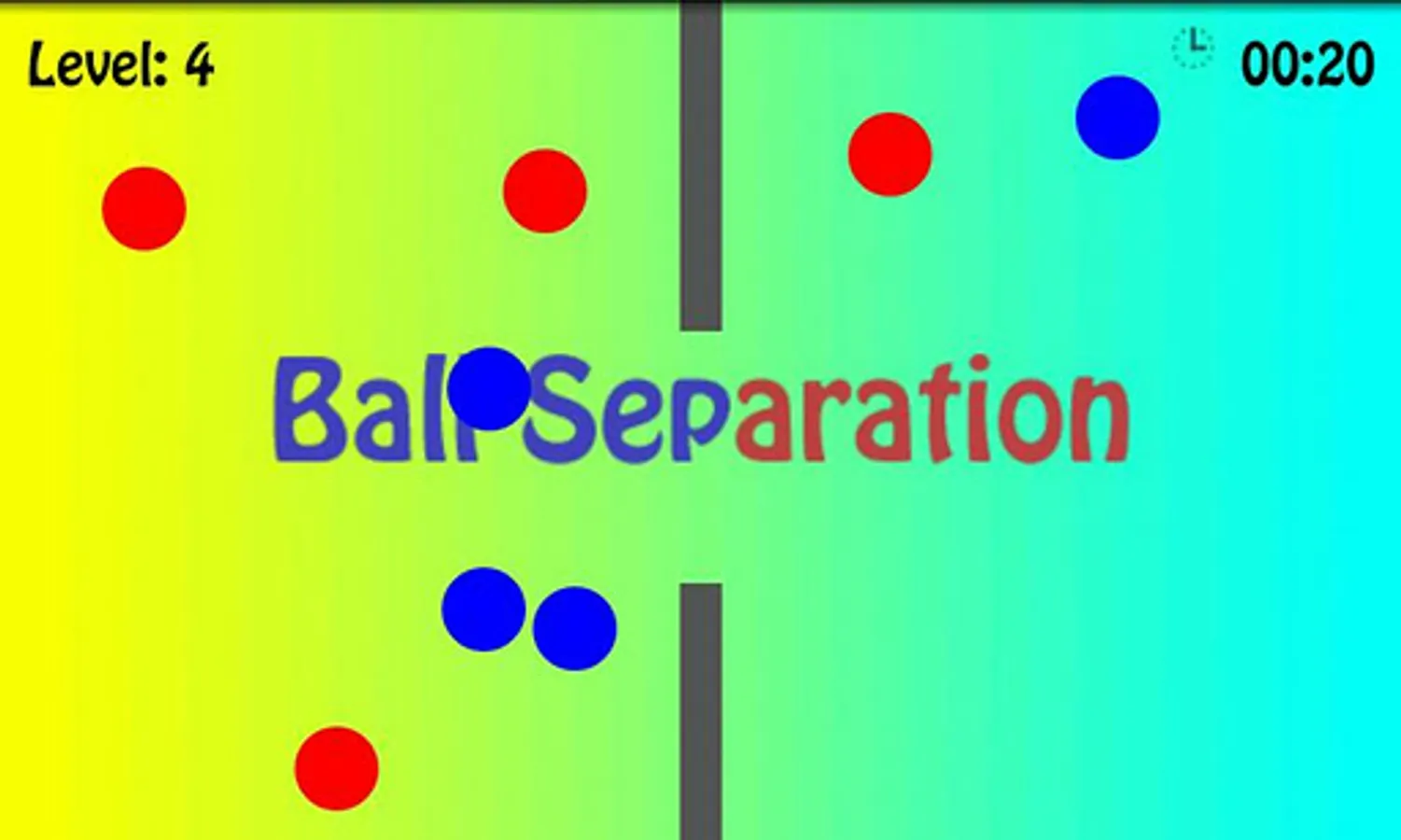Ball Separation is a game where you have to leave the blue balls separated from the red balls by moving the central wall to make them bounce.