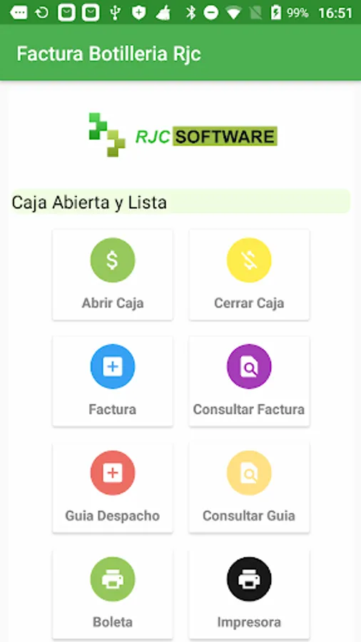 Software to issue Invoice, Dispatch Guides and Electronic Ballots for Botillerias from your cell phone, connects to a bluetooth printer, and prints invoices and dispatch guides and electronic tickets stamped by the SII.