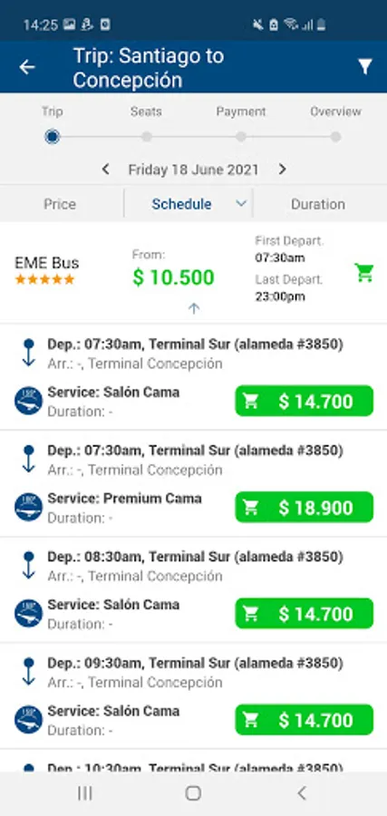 ★ Search trips: By entering the requested data, you can choose the service in which you want to travel