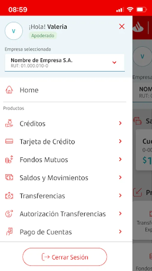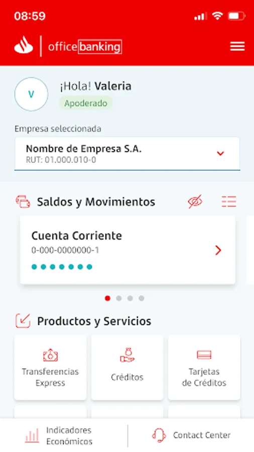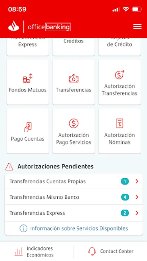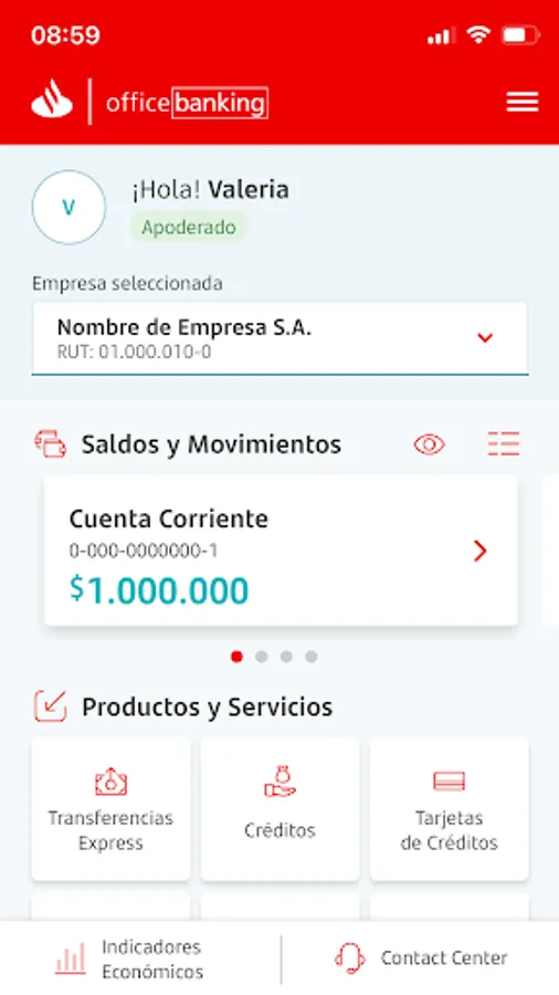 This application is aimed at the proxies of the companies, clients of Banco Santander Chile who have contracted Office Banking, hereinafter indistinctly called “users”, who will be able to use the functionalities according to the defined role and the accounts outlined in the Office Banking platform. This app allows: