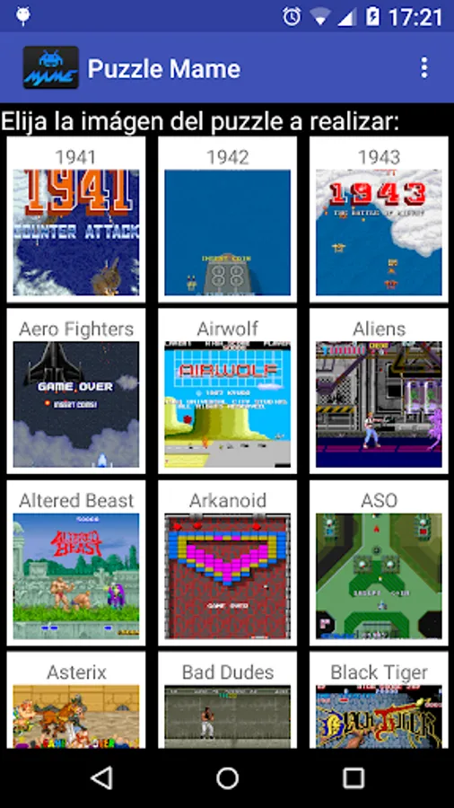Solve puzzles with images of the old console games MAME (25 puzzles available)