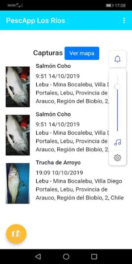 PescAppLosRios version 2.20 is a mobile app that seeks to become a technological support tool relevant to the management, conservation, and administration of the hydrobiological resources of rivers and lakes, facilitating recreational fishermen users, the report of their catches made in continental waters of the Los Ríos region. The use of the App will allow fishermen to perform the recognition of native and salmonid species that are caught, make complaints, keep a record of their catches, among others (for more information see: http://corporacionlosrios.cl/pescapplosrios) .
