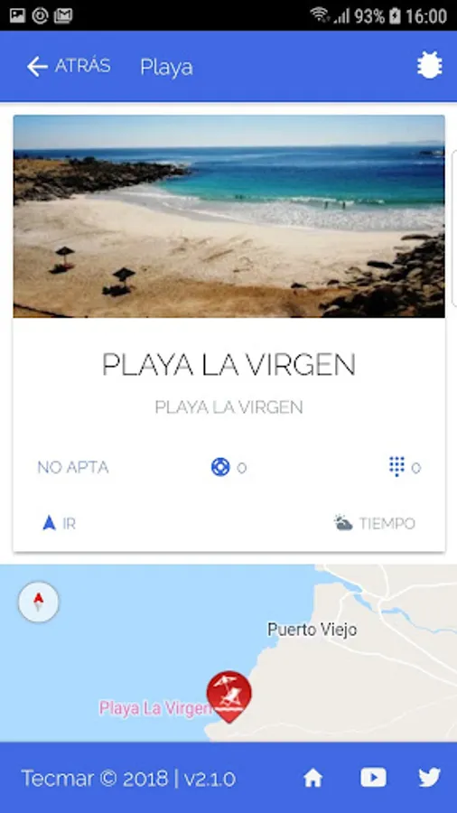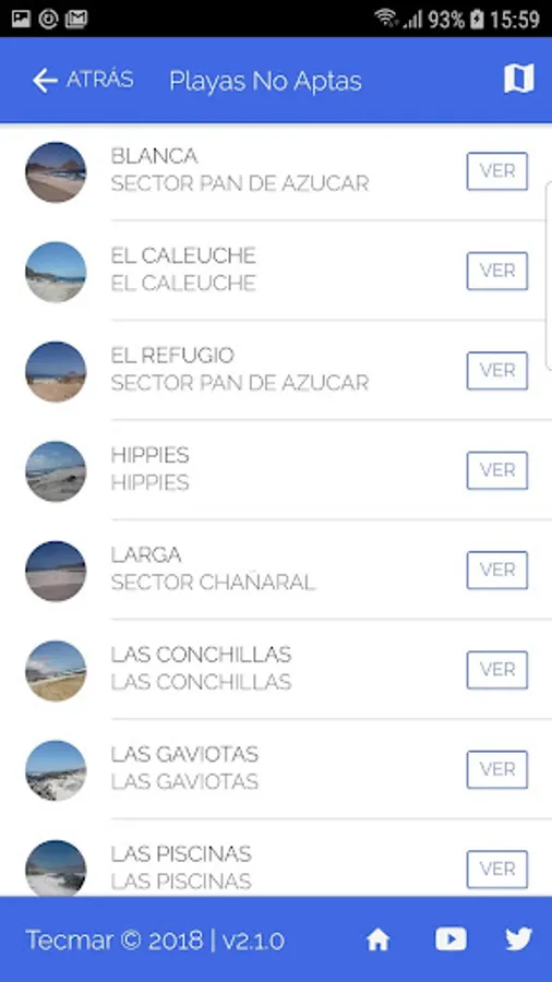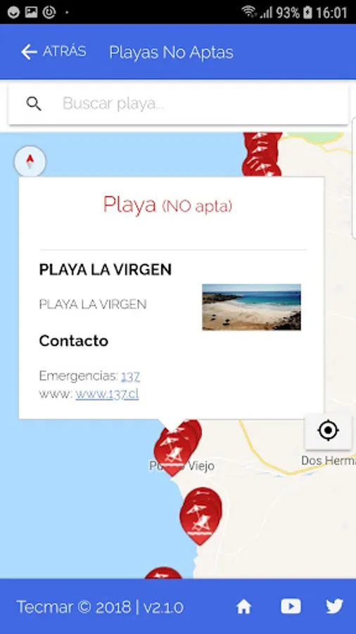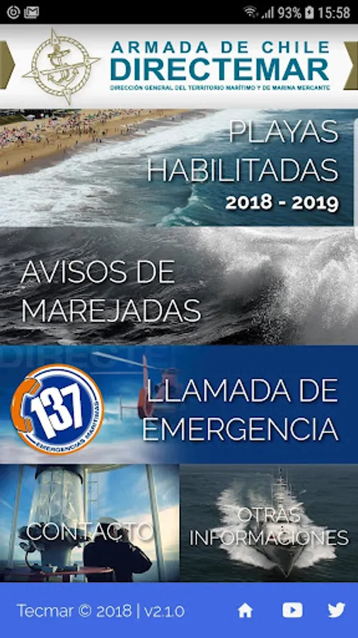 The Directorate General of Maritime Territory and Merchant Marine DIRECTEMAR through its IT department Martítimas TECMAR developed this application that provides access to information on the beaches of Chile enabled.
