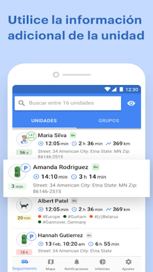 - Work with groups of units. Send commands to unit groups and search by group names.