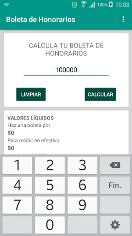 This application will help you calculate quickly and easily your fees, you should only enter the amount and this will show fluids and gross values with the respective tax of 10%, and prodrás be clear about the values that make your report card fees .
