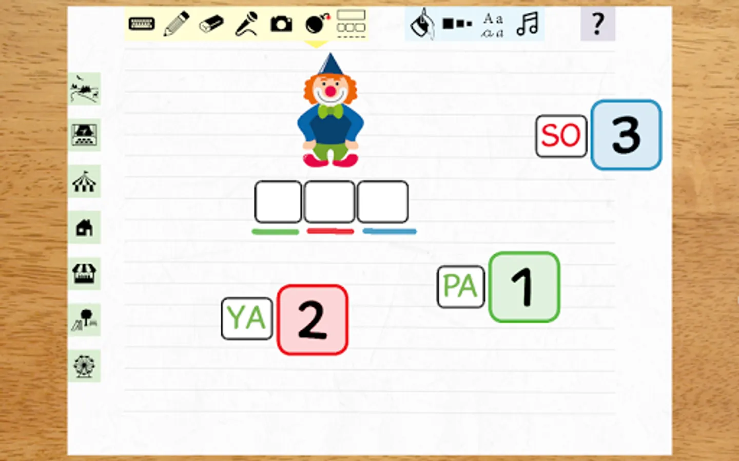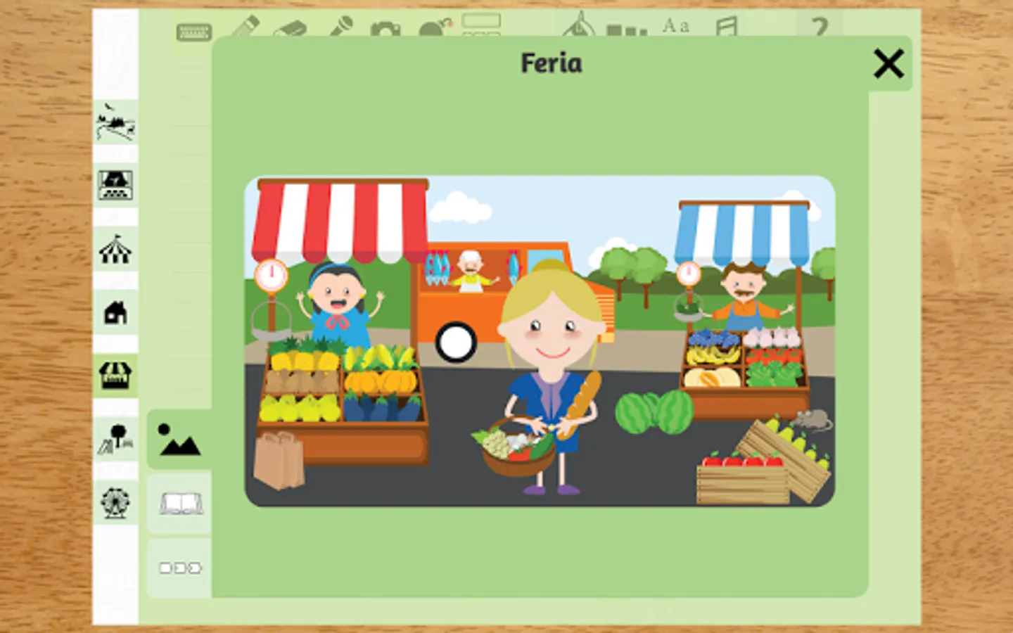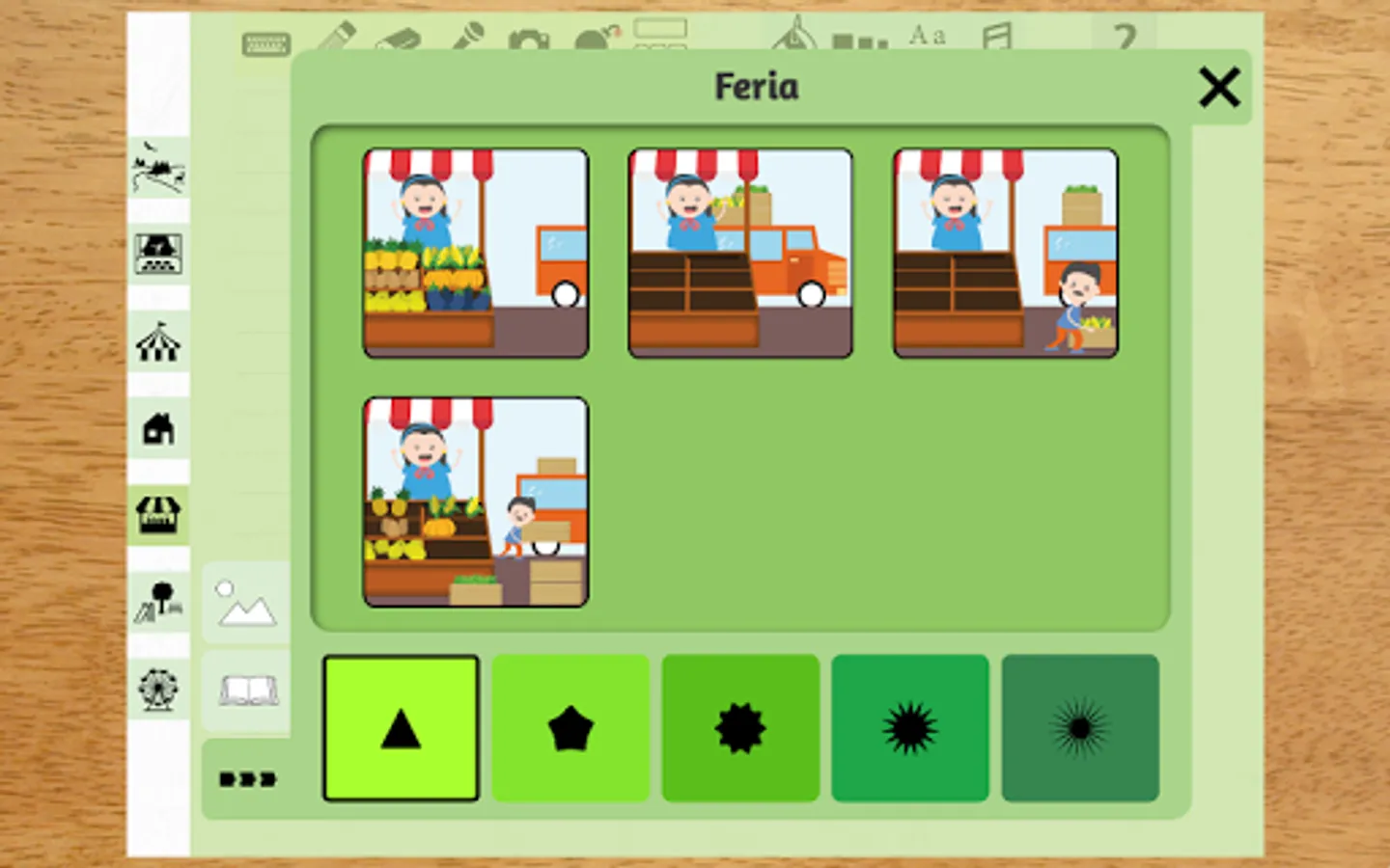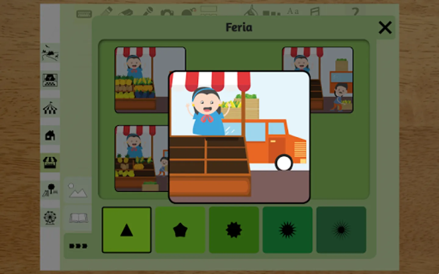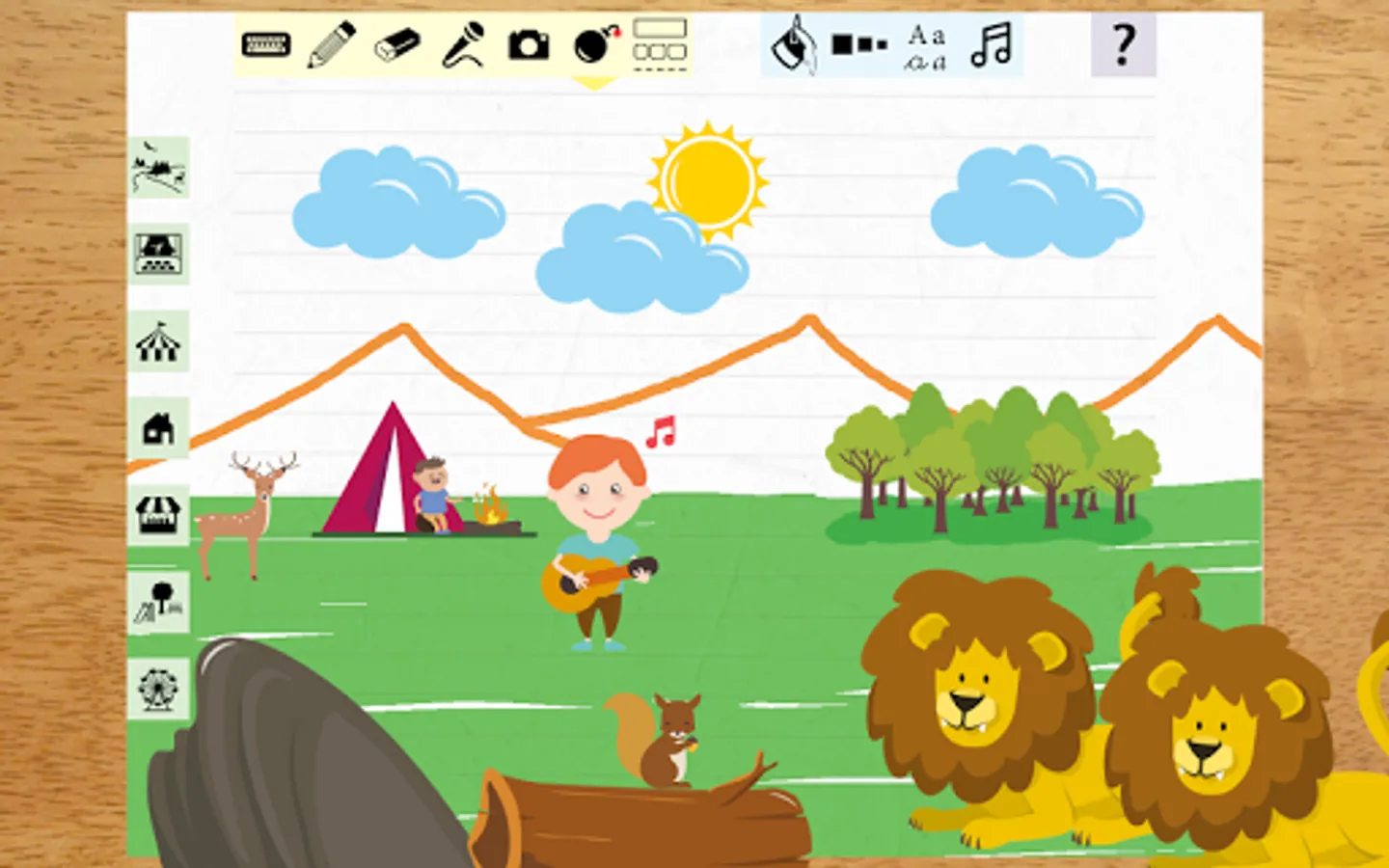 This virtual desktop will allow the girl or boy seven worlds to explore different themes, containing different images associated with his words, as well as stories with embedded audio and ordering stories through picture cards. The user can write with the board of letters from grapheme to phrases or sentences that can be read by the application, you can write or draw by the Pencil tool, will discuss entertaining way with the microphone, change the color and size objects in the desktop, add musical notes to objects or to explore the various shades of these later create rhythms. You can also change the font of the words presented, segmented words into syllables or letters, you can make screenshots of the application to have records of their work and progress, use rubber or pump to remove stimuli. In addition, you can count on the help button, which allows the mediator more information on the operation of sections and application tools.