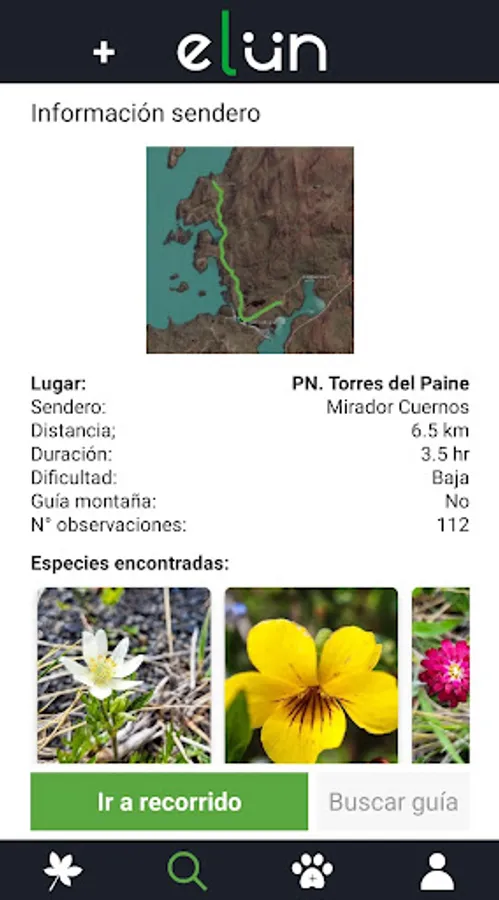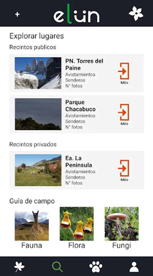 The elün application provides users with a field guide on the different species that can be observed in the enclosures. These are relationships with their possible sightings on the different trails.