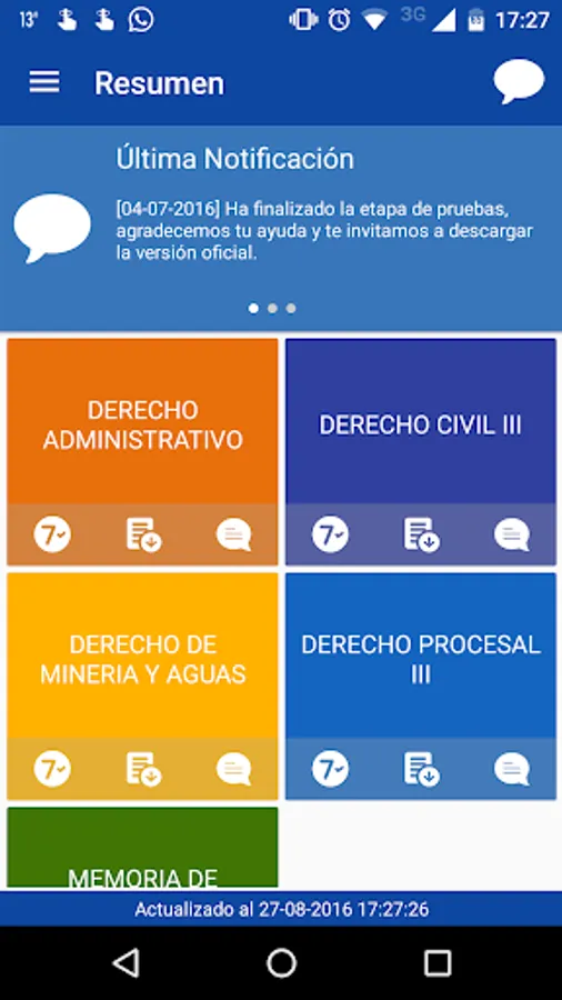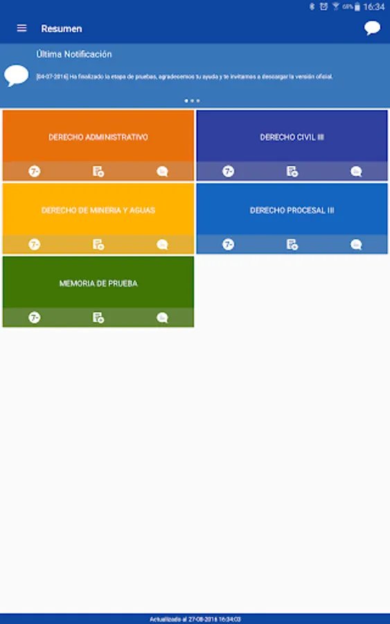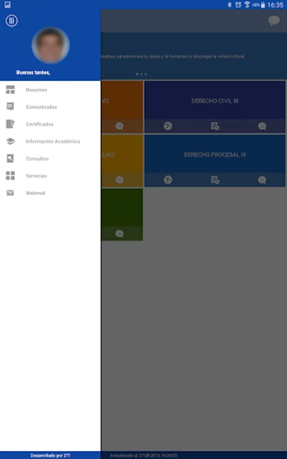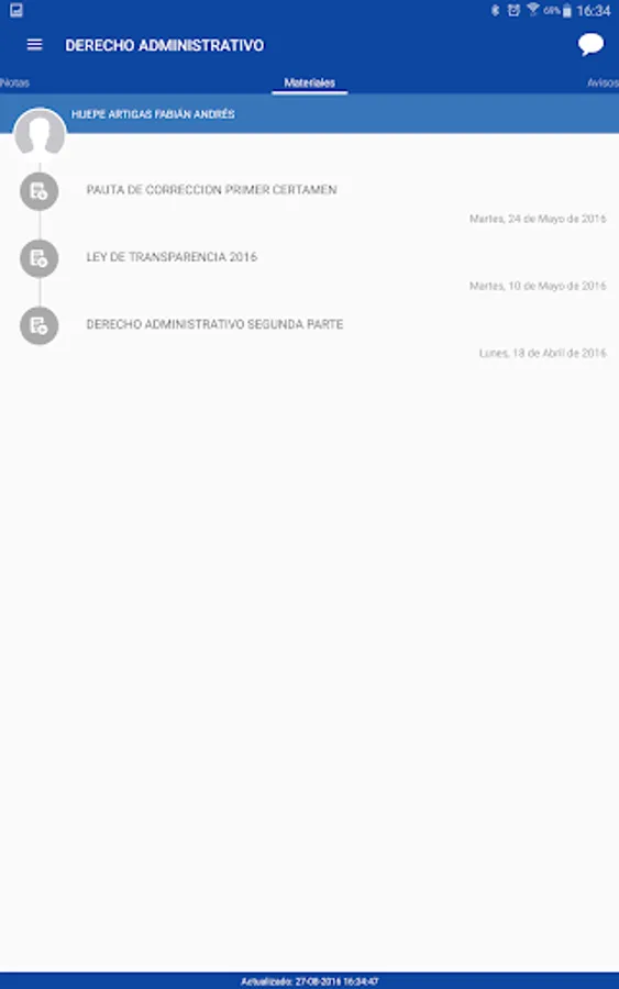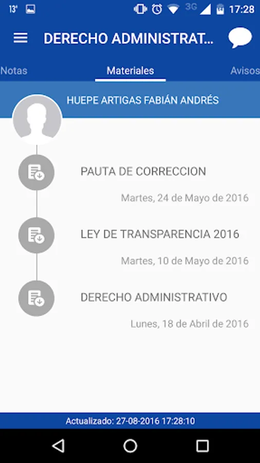 - Academic information (INFODA) materials, qualifications and notices of the subjects of the period