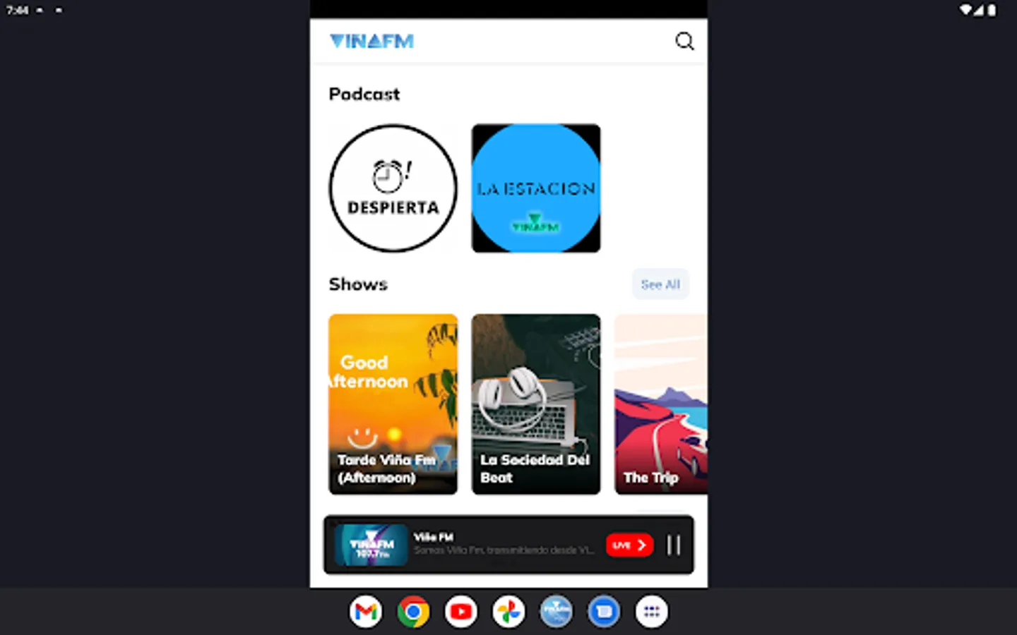 VIÑA FM transmits from the city of Viña del Mar through 107.7 FM.