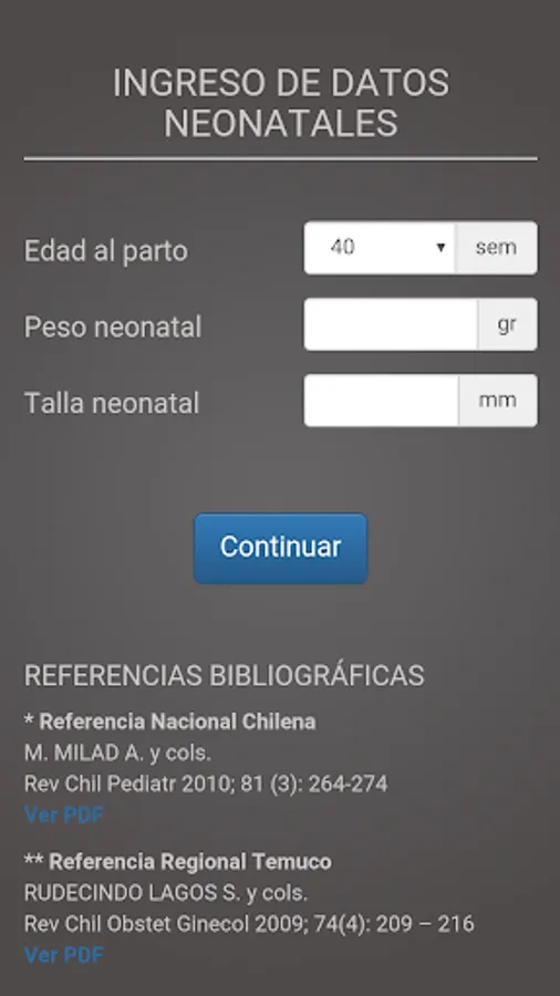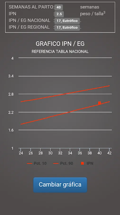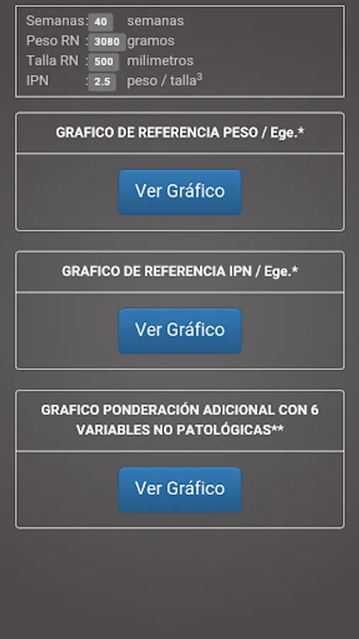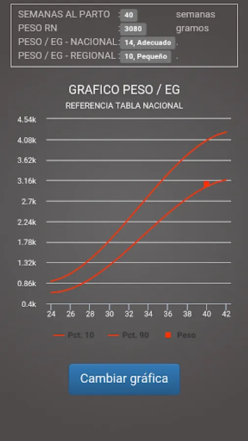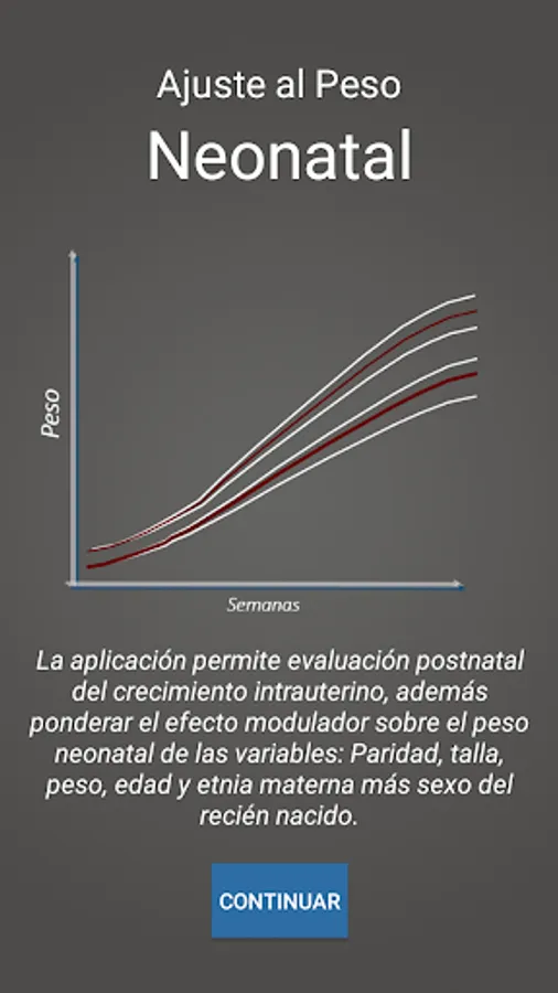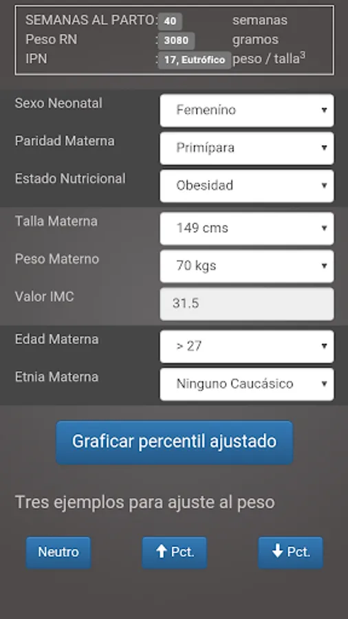 Application that allows adjustment Weight / neonatal Eg depending on gestational age, correcting for 6 non-pathological variables (biological): Sex RN, parity, height, weight, age and maternal Ethnicity.