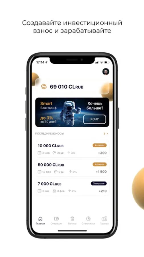 Следите за балансом инвестиционного счета, мониторьте прогресс активных взносов и проектируйте своё успешное будущее!
