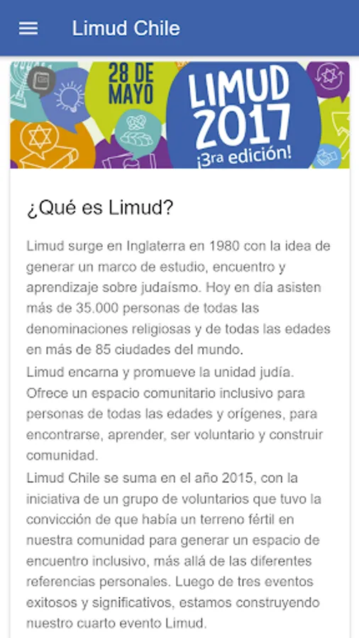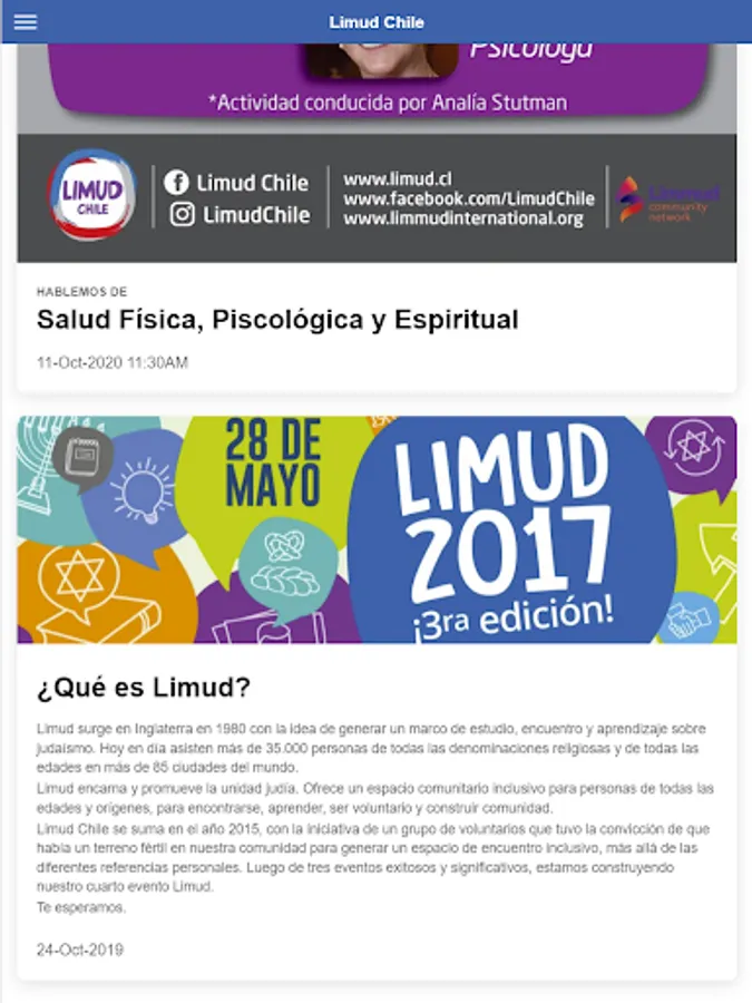 Application to be aware of the news and events developed by Limud Chile.