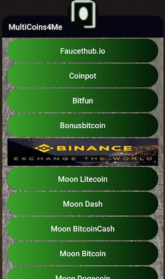 earn in an app. In addition to the well-known currencies Bitcoin, Litecoin, Rippel and Co., much emphasis was placed on providing alternative coins such as Cardano, Nem, Lisk, BNB, BAT for earning. Coins include Monero, DOGE Coin, Ethereum, Bitcoincash, ZCash, Bitcore, Blackcoin, Dash, Peercoin, Primecoin, Pinkcoin, Verge, Tron, Syscoin, Neo and many more.
