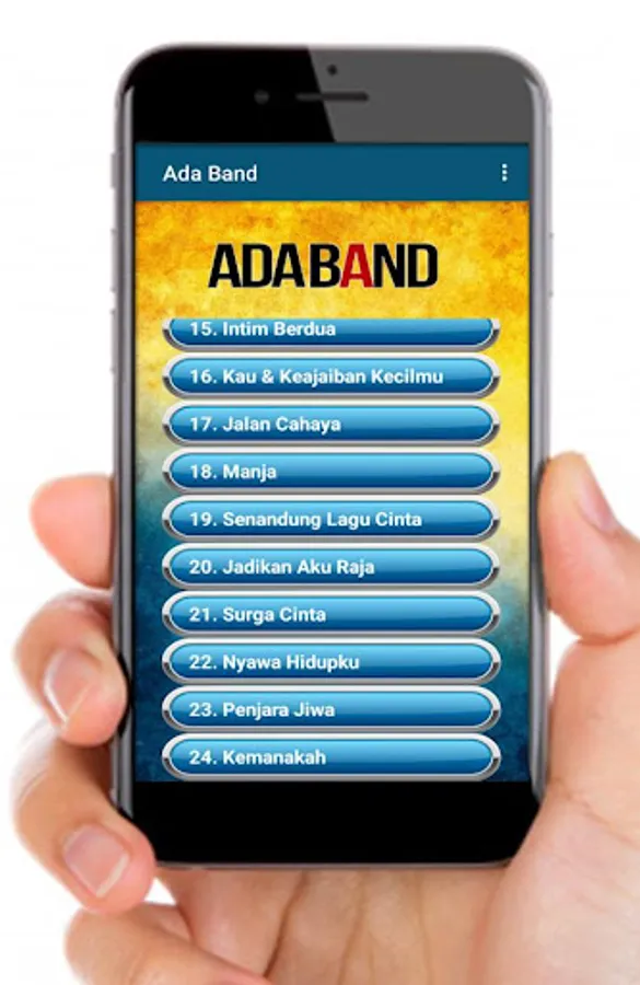This android based mobile application is available for those of you who like the romantic songs Ada Band. This Ada Band Playlist application comes with lyrics in each song. This application can run OFFLINE (without requiring an internet connection), displayed interactively with clear images making it easier for users, presented for FREE and can be stored in EXTERNAL MEMORY.