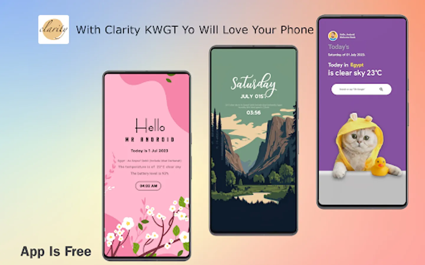 Try Clarity Kwgt now and bring your homescreen to an absolute peak of beauty!
