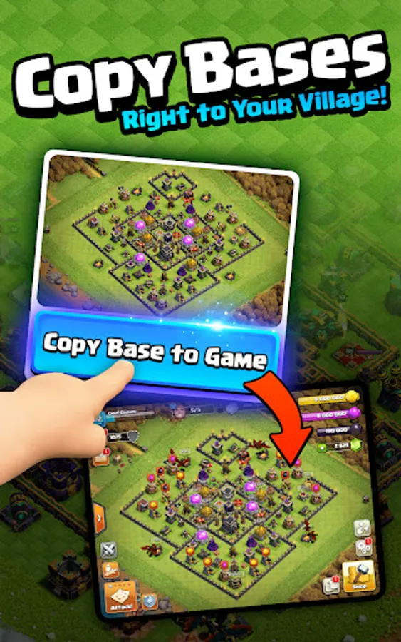 📍Copy the perfect CoC base RIGHT to your game in seconds.