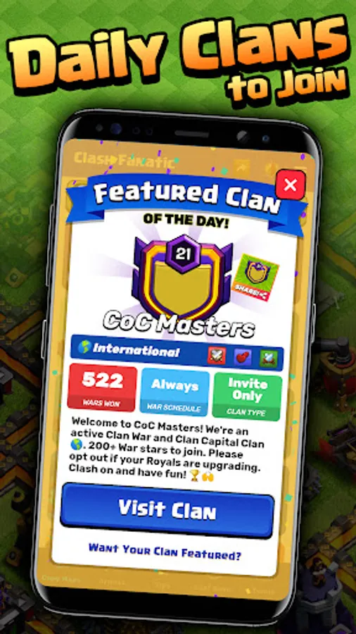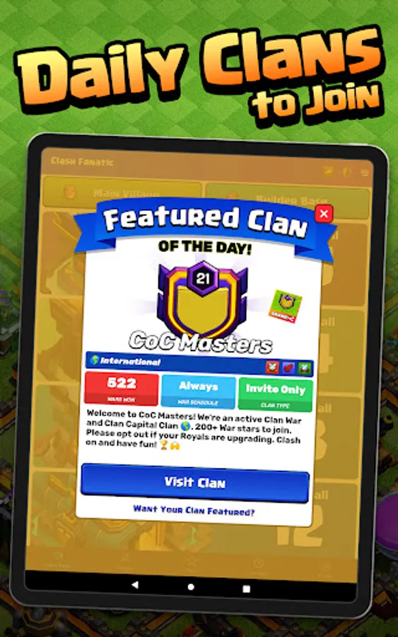 ● Find your Next Clan: - Looking for your next clan? We feature established or up-and-coming clans daily!